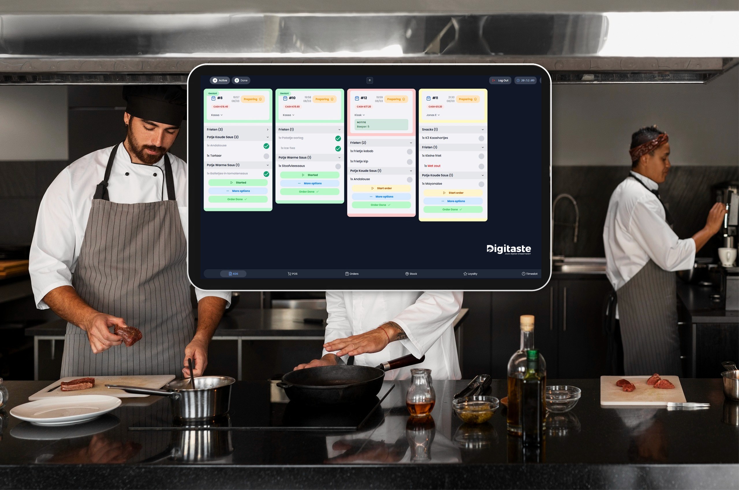 Bestellingen zijn onmiddellijk zichtbaar voor de keuken.